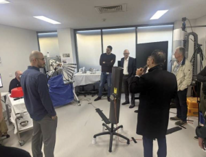 During the visit, A/Prof Raniga and colleagues presented the centrepiece of their Arthrokinematics Program: the eight-muscle actuated, six-degree-of-freedom ex vivo cadaveric shoulder simulator, known as the Translational Shoulder.